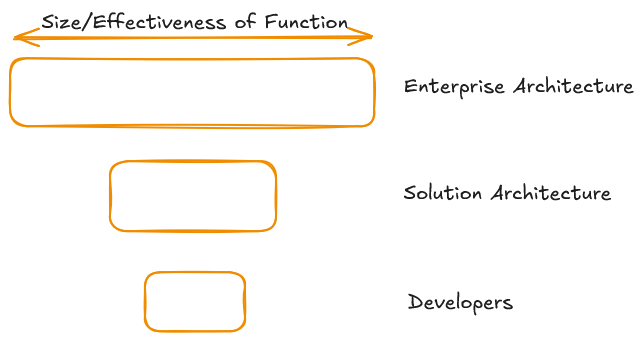 - Enterprise Architecture – tasked with trying to get the organisation to “build the right thing”